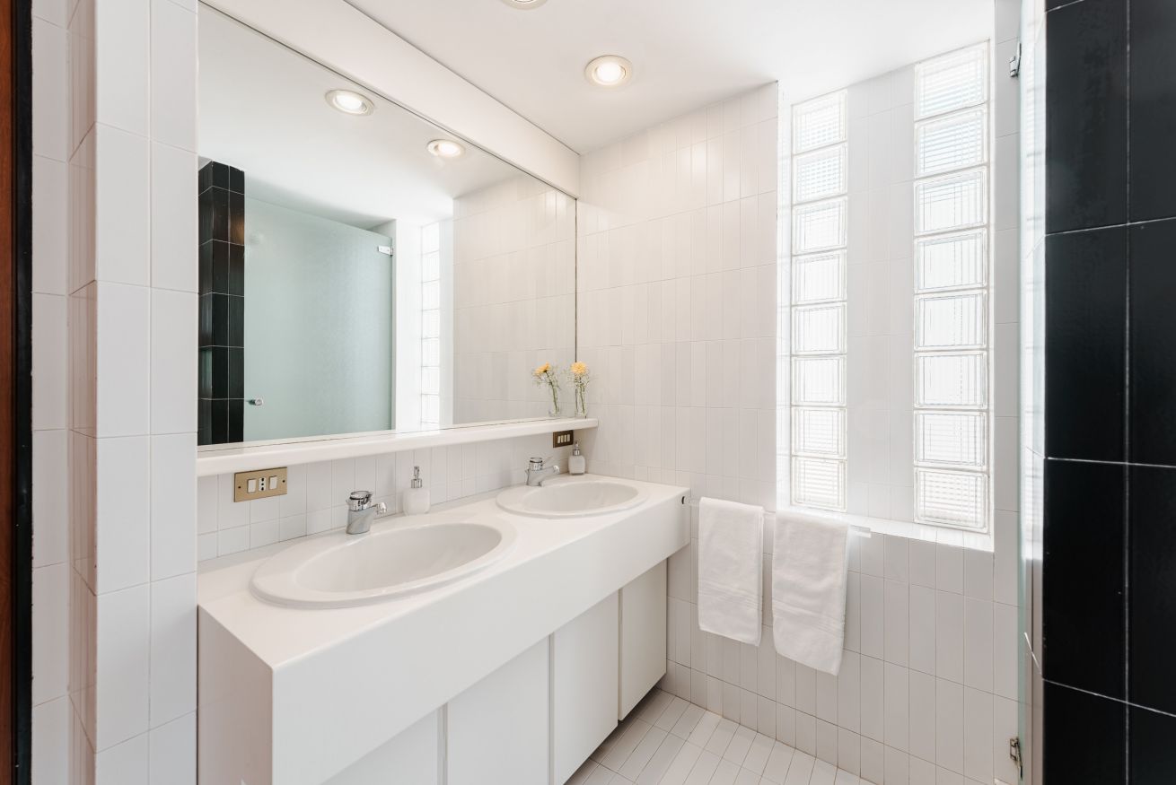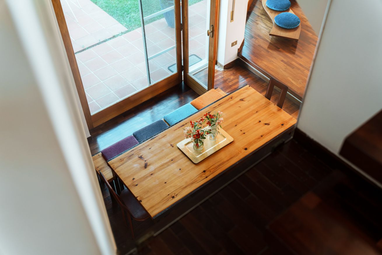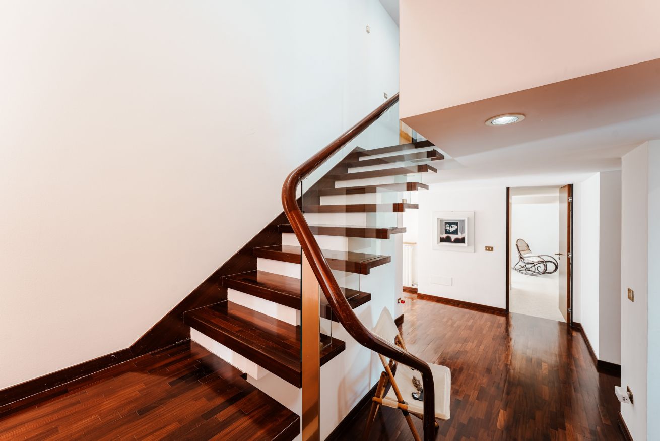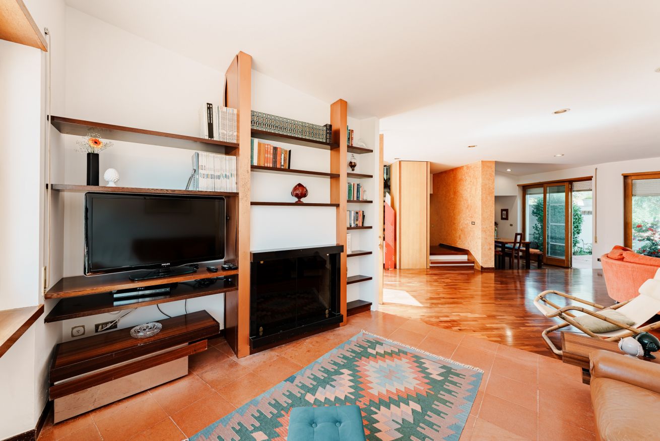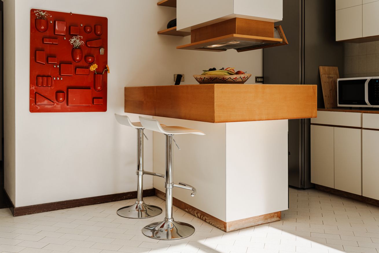 La sua architettura richiama le forme essenziali del design italiano anni ’80 (Bauhaus Movement), con spazi aperti, ampie vetrate e ambienti che dialogano con il giardino circostante. La villa si sviluppa su due livelli e accoglie fino a 10 ospiti in ambienti ampi, luminosi e funzionali.