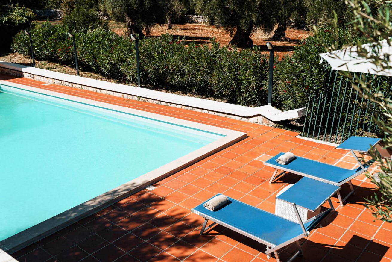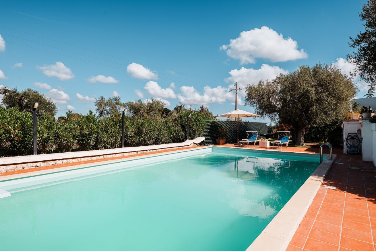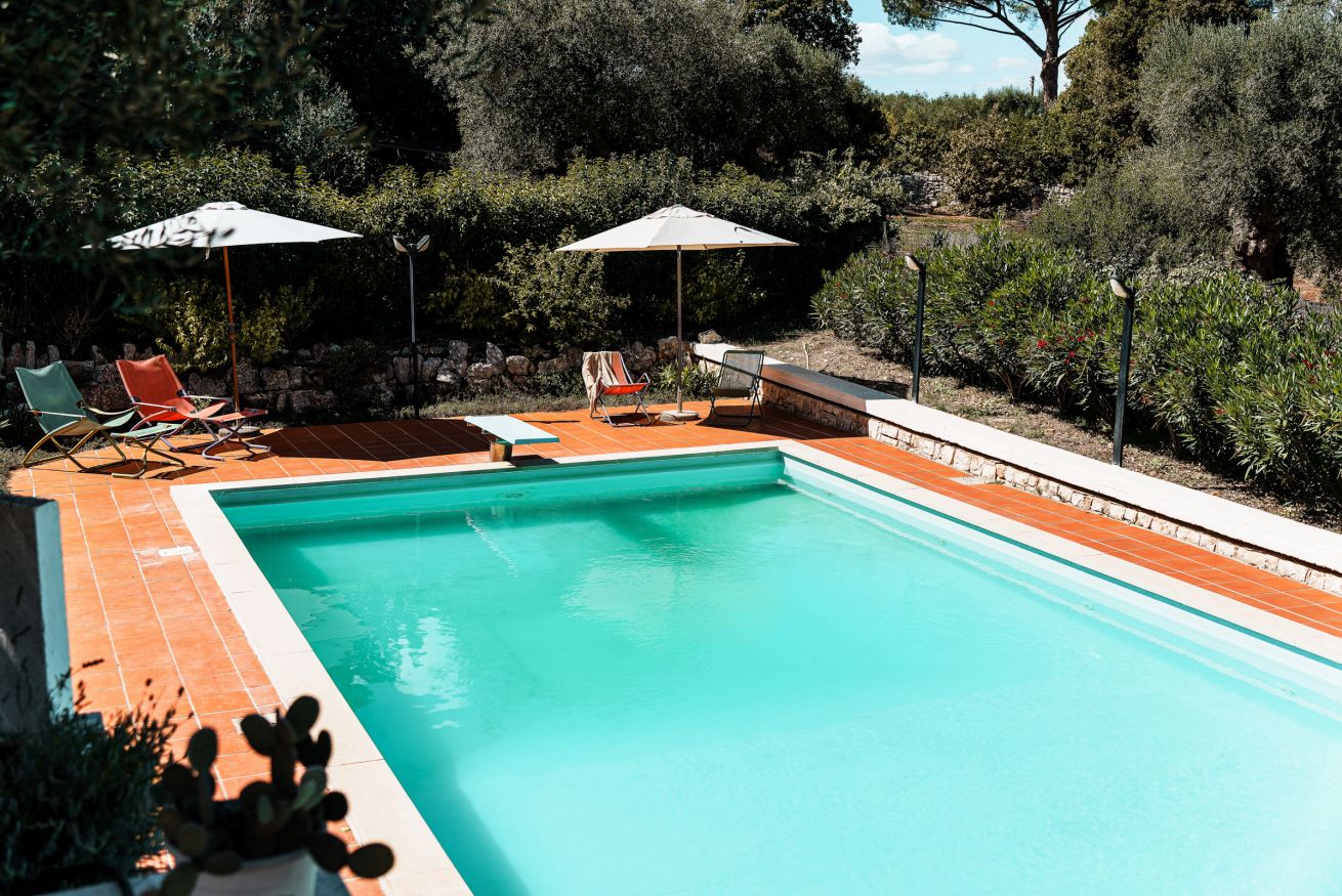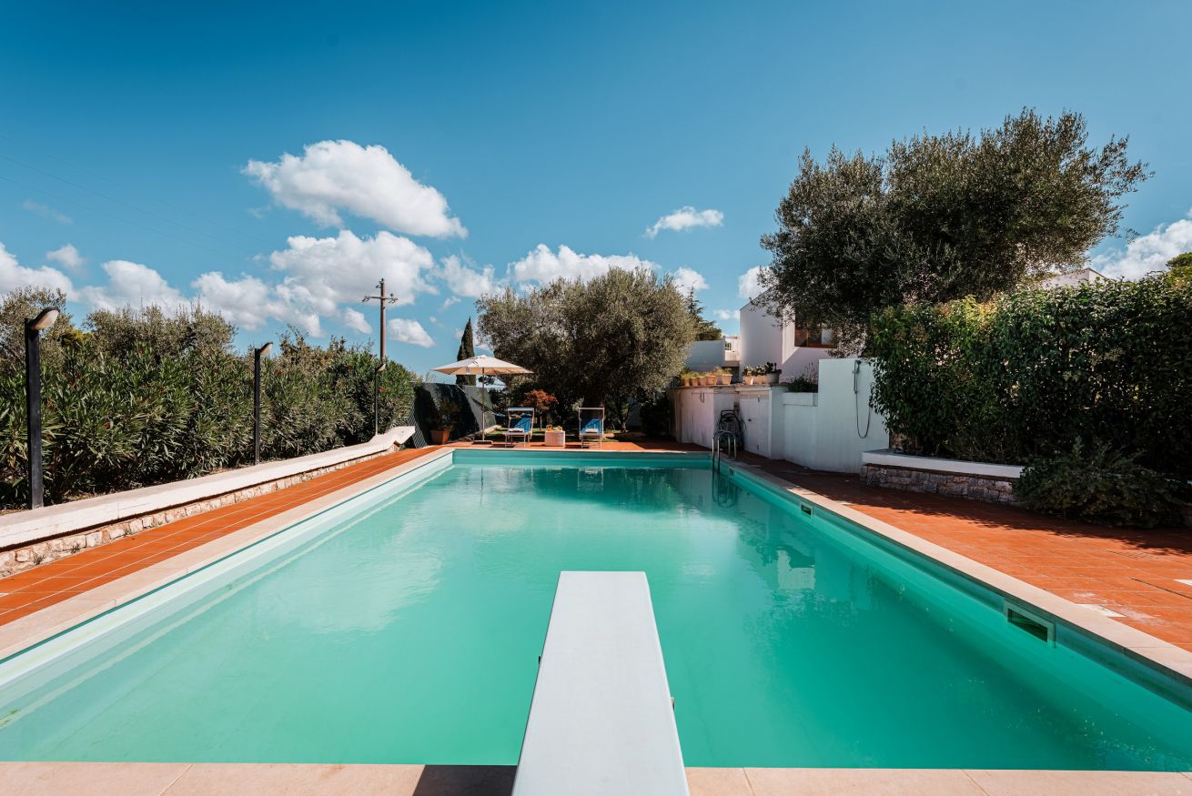 Per le tue giornate di puro benessere all’aperto, la grande piscina privata di circa 70 m² (12 × 6 m) con trampolino ti accoglie tra riflessi d’acqua e profumo d’ulivi, per vivere l’estate pugliese in totale relax.
