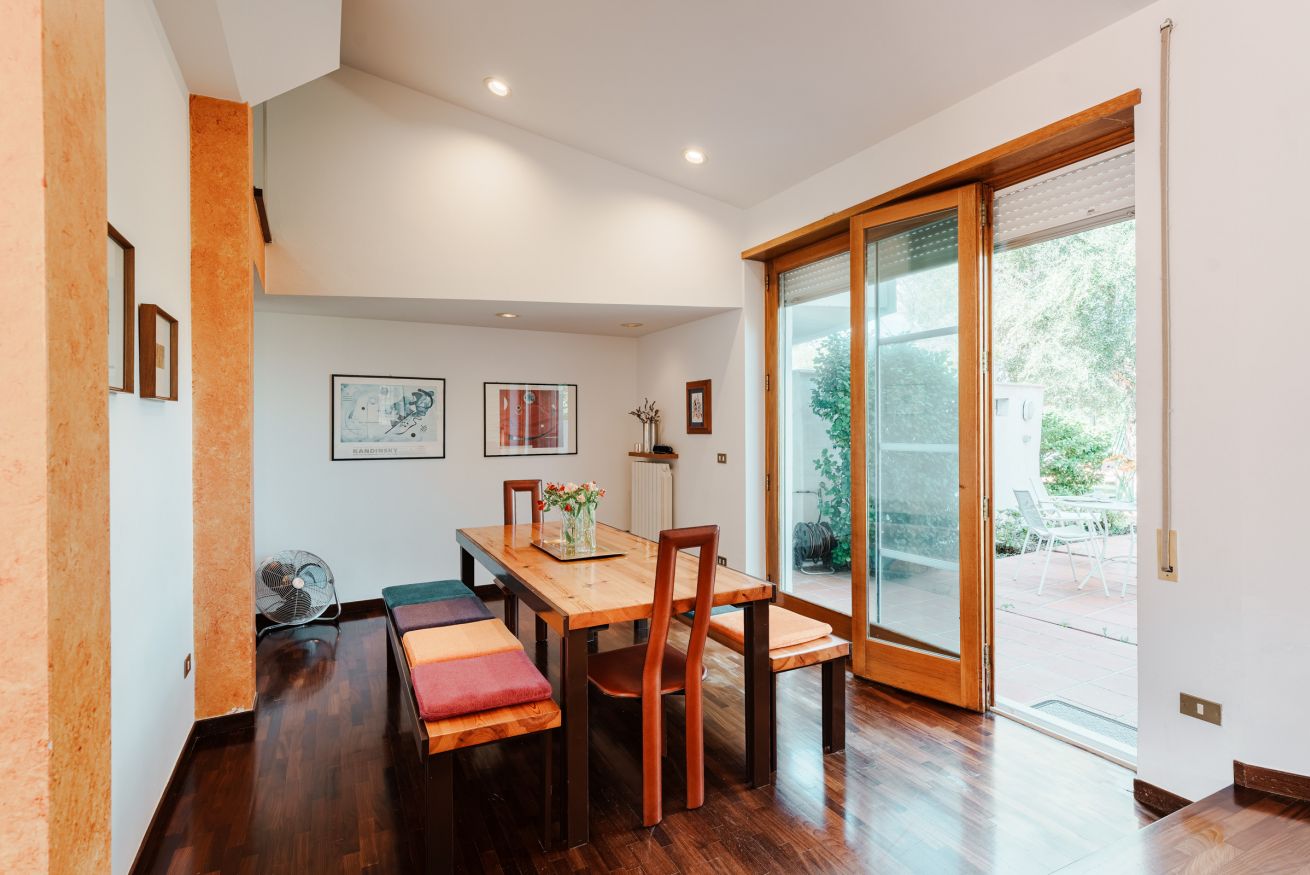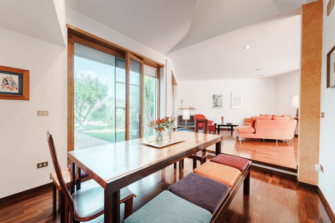 • Sala da pranzo affacciata sul giardino, con accesso diretto alla zona piscina