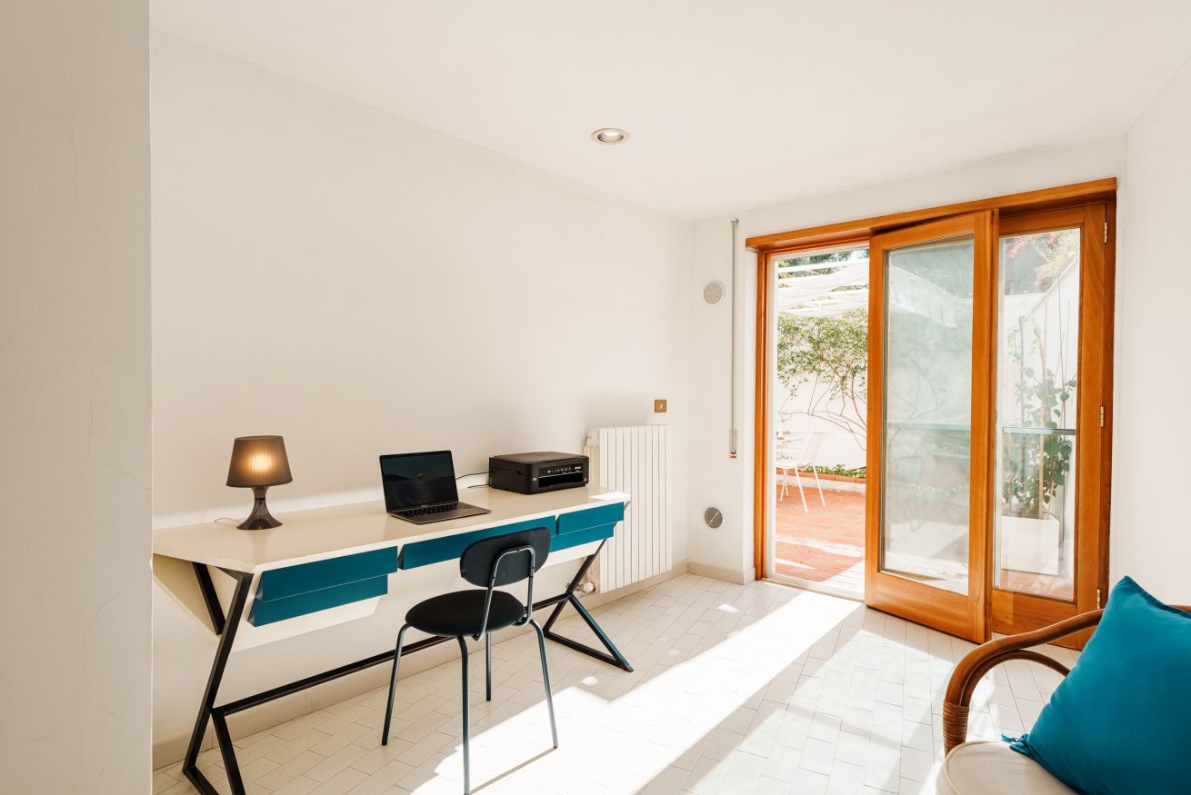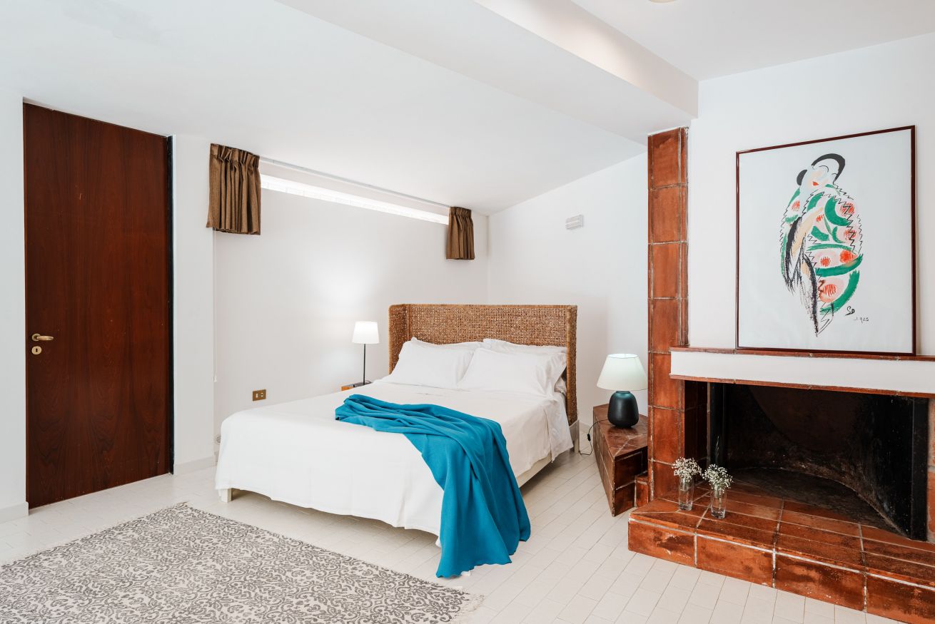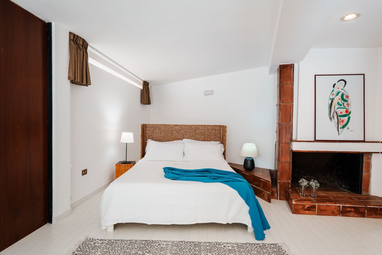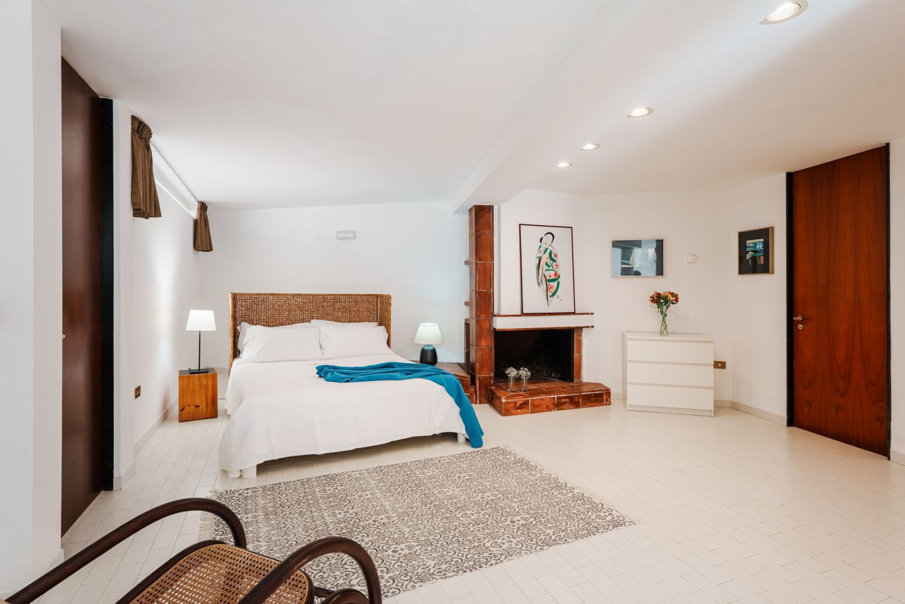 • Camera matrimoniale con bagno ensuite con doccia e zona smart working e accesso diretto alla zona pranzo esterna. Camino scenografico a scopo decorativo.