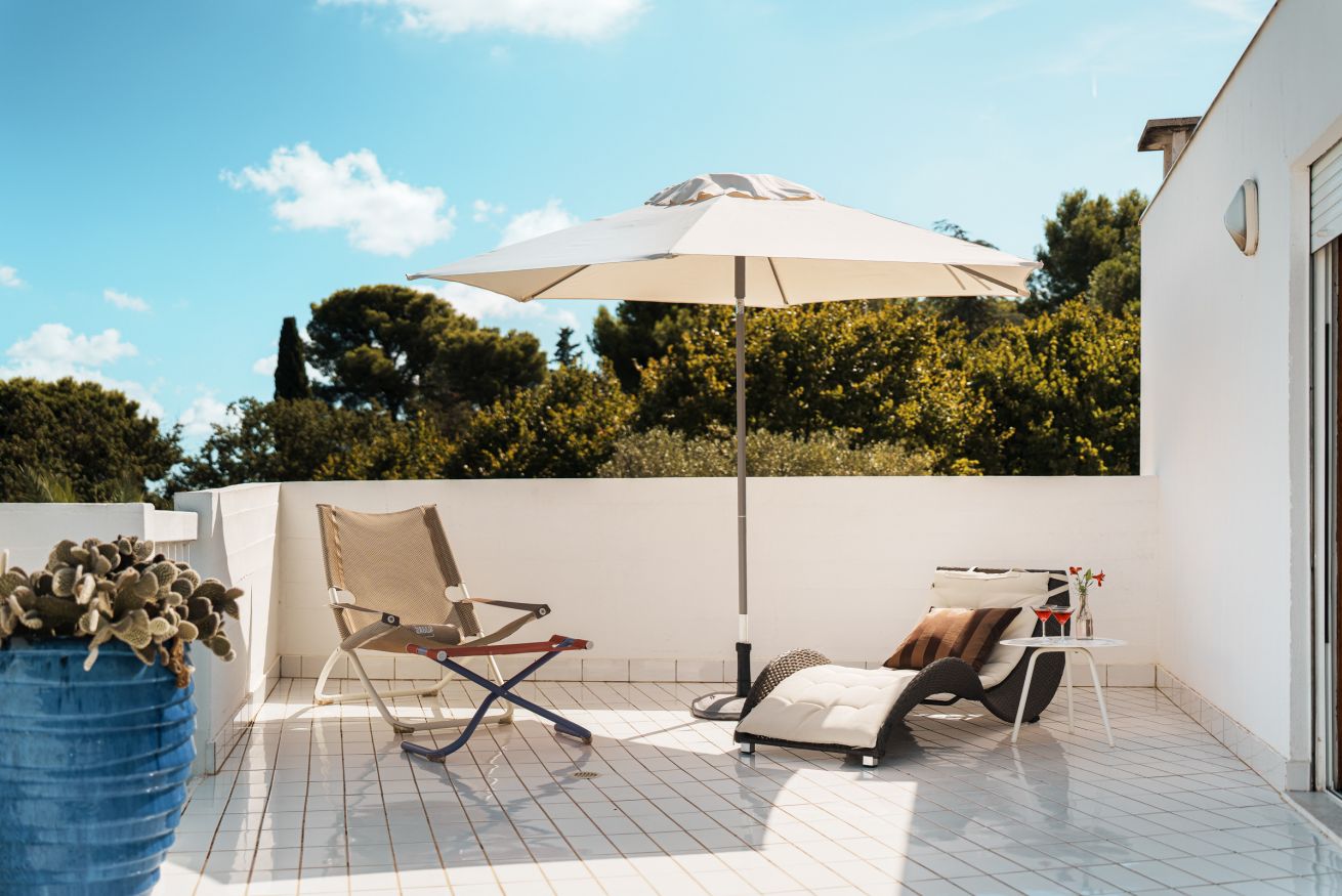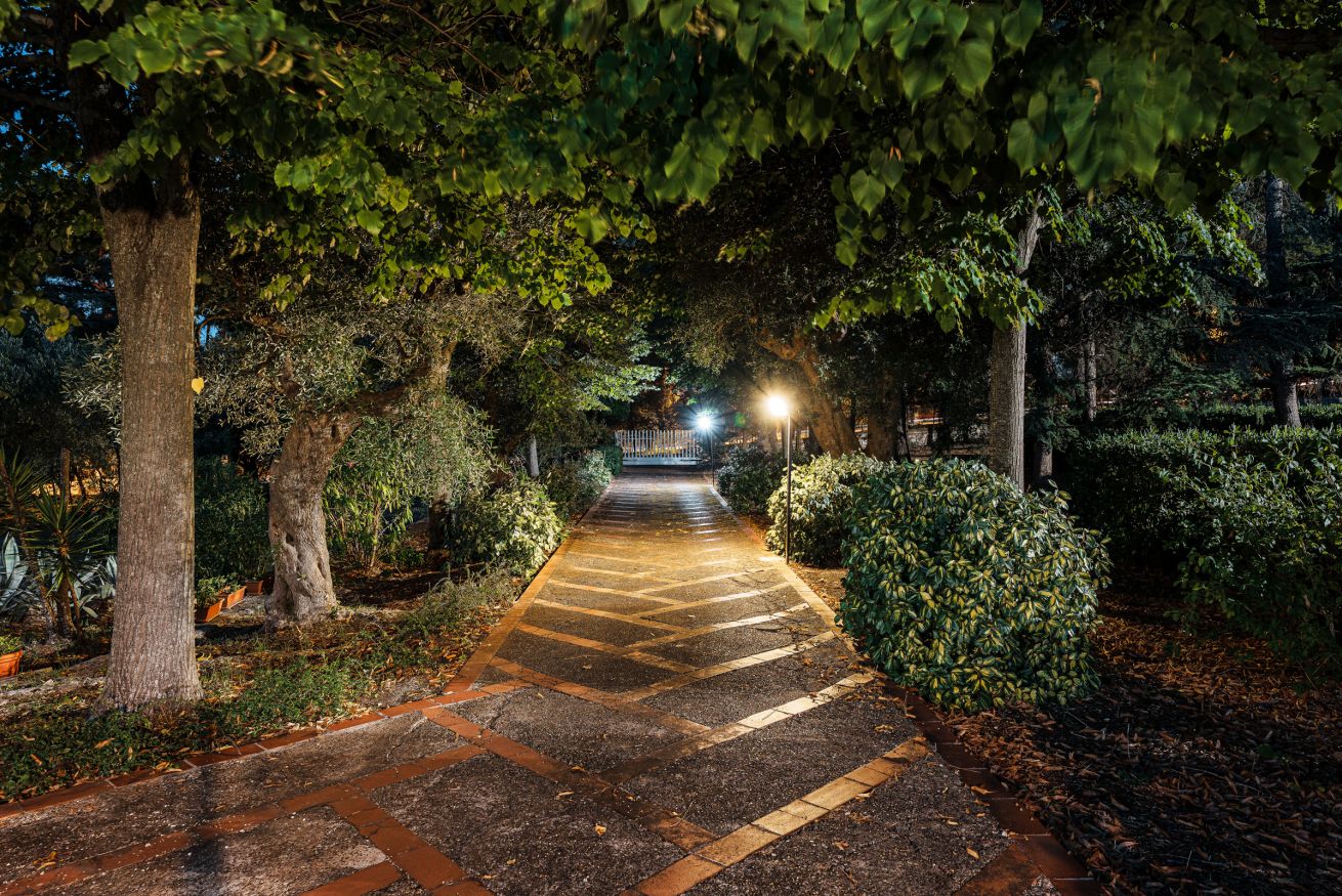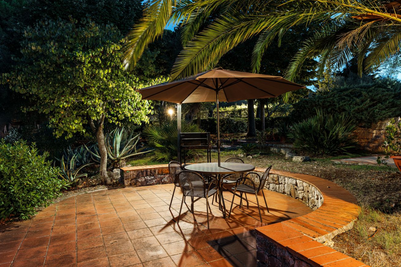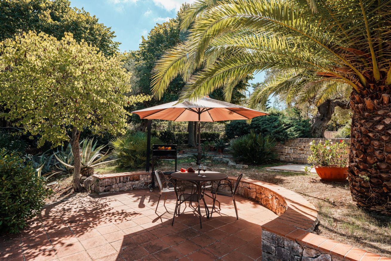 Il cuore della villa è il suo parco mediterraneo: oltre 6.000 m² di verde curato con ulivi secolari, mandorli e piante locali che creano un paesaggio rilassante e piacevolmente pugliese.