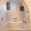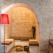 Trulli L'Aia di Cucumo form a luxurious complex located in the splendid Apulian countryside, where the green of the hills meets the traditional white local stone that covers most of the structure.
