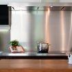 The large fireplace dominates the room and gives it a touch of modernity, also being emphasized by the stylish lamps and the steel kitchen.