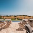Imagine waking up in the morning in a typical Apulian structure surrounded by orchards, olive trees, and aromatic plants that fill the air with Mediterranean scents. After an outdoor breakfast, you can plunge into the splendid private pool equipped with comfortable sunbeds, tables, and umbrellas, ready to welcome you for a refreshing swim.