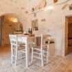 With a country-chic pastel colored theme, Trulli Santa Maria dei Grani has been finely retouched with natural materials in wood and stone, fusing the interiors and exteriors of Trulli in perfect uniformity.