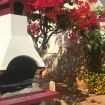 Once through the automatic gate, a long drive lined with flowers leads to the spacious parking area.
