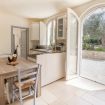 After the automatic gate and once you have passed the private parking for cars and bicycles, you reach the outdoor area- characterized by the presence of a private swimming pool (10x4 m) and sunbeds placed under the shade of the pergola. The swimming pool leads up to the covered patio which is equipped with a wood oven and kitchenette. It’s an ideal solution for preparing and enjoying dinners while gathered around the table and overlooking the olive garden.