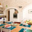 The complex, built in warm and welcoming colors, is composed of various Trulli cones and cottage houses, called Lamie closely connected, but still with easily distinguishable interior areas such as an ample living area with armchairs and stone seats; a dining area finely equipped with household appliances plus a wine fridge, four bedrooms of which two are Master bedrooms (one of them with an en-suite bathroom ), one bedroom with bunk beds and a further bedroom with two single beds, (which can be put together), another bathroom and a laundry and storage area.