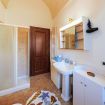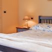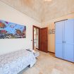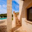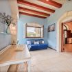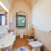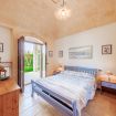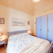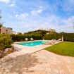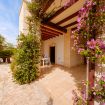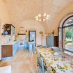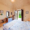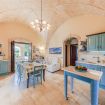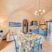From the external staircase, you also reach a terrace with a table and chairs, offering a partial sea view, partially overlooking the local farm and the pool. The interior is furnished with the simplicity and warmth of the Puglian style, with a traditional ceiling adorned with wooden beams and typical stone vaults, creating a warm and harmonious atmosphere. The choice of soft pastel colors with shades of blue, green, and blush is also excellent, creating a bright environment that reflects the colors and tranquility of the area.