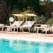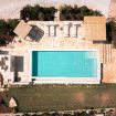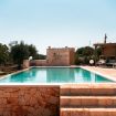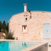 Il cuore del Trullo dei Quattro Venti è la piscina a sfioro di 10×4 mt, con idromassaggio integrato, circondata da un solarium in pietra bianca. La piscina ha una profondità variabile da 90 cm a 140 cm: si accede tramite una scalinata con sedute e idromassaggio a 90 cm, che scende fino a 140 cm per poi risalire a 90 cm sul lato opposto. Intorno, lettini prendisole distribuiti tra aree soleggiate e due patii dedicati all’ombra, perfetti per leggere o rilassarsi nelle ore più calde.