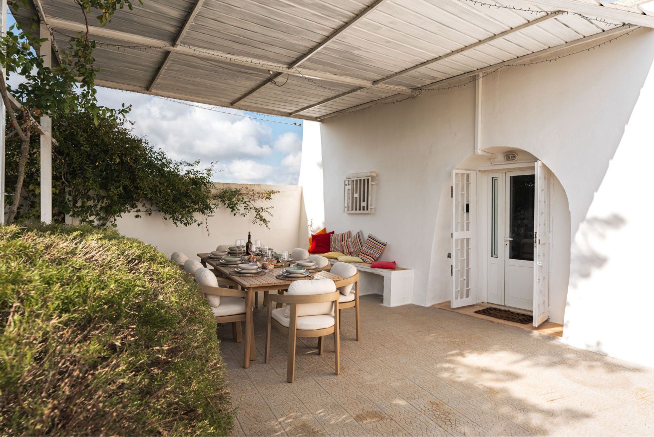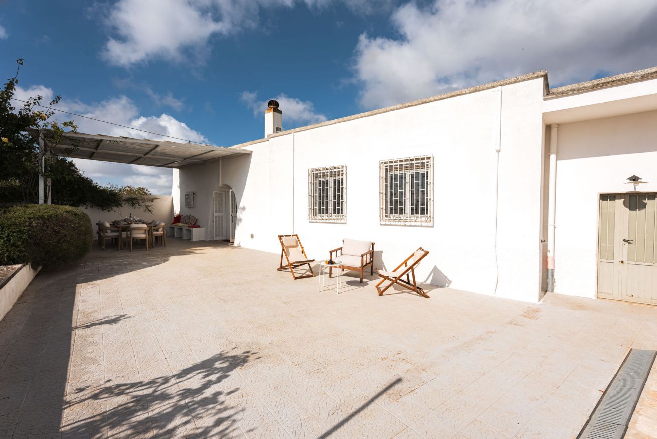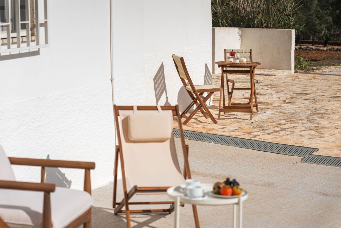 L’architettura resta fedele alla tradizione: qui la vita scorre all’aperto, tra bagni di sole e cene al fresco. Si arriva percorrendo stradine fiancheggiate da muretti a secco; il cancello automatico si apre su un vialetto sterrato tra ulivi, piante mediterranee e terra rossa. L’atmosfera è naturale e rilassante, in estate si sentono le cicale, al mattino gli uccellini. Pensata per 4 ospiti (+2 bambini) in cerca di relax, natura e convivialità.
