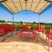 - Ampio patio attrezzato dotato di divanetti e tavolo da pranzo esterno per 20 persone
