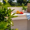 Il rigoglioso giardino che circonda l’abitato si fonde perfettamente con il paesaggio rurale che circonda la tenuta. Dall’ingresso, dove è stata predisposta una comoda area parcheggio, si attraversa l’atrio antistante l’ingresso delle unità abitative e si giunge all’ampio pergolato attrezzato, arricchito dal piccolo agrumeto; di certo una delle aree più vissute dagli ospiti che accoglie dei comodi divanetti, il grande tavolo sociale e l’angolo BBQ. Il posto ideale, al riparo dal caldo delle lunghe giornate estive, dove leggere un libro o sorseggiare un drink e trascorrere tranquilli momenti di relax, oltre che organizzare indimenticabili pranzi e cene a base di sana Cucina Pugliese!