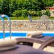 L’area include anche un piccolo stanzino attrezzato completo di frigorifero e lavatrice. Il sentiero che costeggia l’orto biologico a disposizione degli ospiti, conduce alla grande piscina (12x6 m), perfettamente collocata nel cuore della tenuta; un posto magico da cui si godono scorci unici della campagna circostante che accompagnerà piacevolmente ogni giornata trascorsa in Masseria. L’area è attrezzata di lettini, sdraio e divanetti, oltre che da un comodo gazebo.