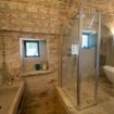L’ingresso è sull’ampio soggiorno dotato di grandi vetrate sul giardino con vista, la cucina ben attrezzata dispone di un grande tavolo, comodi divani, camino e un bagno di servizio. Dalla cucina si ha accesso alla prima suggestiva camera da letto in pietra con bagno ensuite con vasca e doccia. Le altre due camere matrimoniali hanno accesso sia dall’interno che dall’esterno e bagno ensuite. La quarta camera matrimoniale con bagno ensuite si trova in posizione distaccata rispetto al corpo centrale. Ogni camera dispone di aria condizionata e riscaldamento. A disposizione degli ospiti due scrivanie necessarie per chi, anche in vacanza, ha bisogno di lavorare senza essere disturbato.