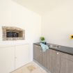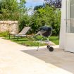 L’area esterna dei trulli è caratterizzata da un patio a bordo piscina attrezzato con tavolo e sedie per pranzi e cene in totale relax, una zona con area barbecue e forno a legna e la piscina al sale di mt 8x5. L’area è circondata da un piccolo giardino e una zona con alberi da frutto.