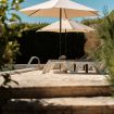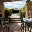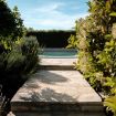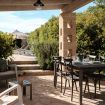 - Patio in legno, prospiciente la splendida piscina, attrezzato a zona pranzo esterna e dotato di tavolo e sedie