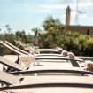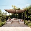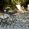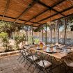 - zona d'ombra con tavolo, sedie, sdraio e piccola cantinetta