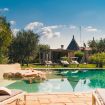 Trulli di lcharme con piscina a sfioro splendidamente incassata nella roccia viva con una piccola area per i bambini e delle comode sedute in acqua