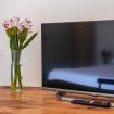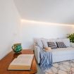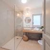 Il disimpegno dà accesso ad una seconda zona living con TV a schermo piatto, divano e poltrona, annesso il bagno completo con doccia.