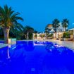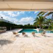 Villa con piscina circondata da palme, dotata anche di un campo da tennis / calcio e di un ampio spazio esterno. Situata nel cuore della Valle d'Itria, nelle immediate vicinanze di Martina Franca