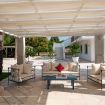 Il Patio esterno è arredato con divanetti e tavolini, con copertura ombreggiante a vela.